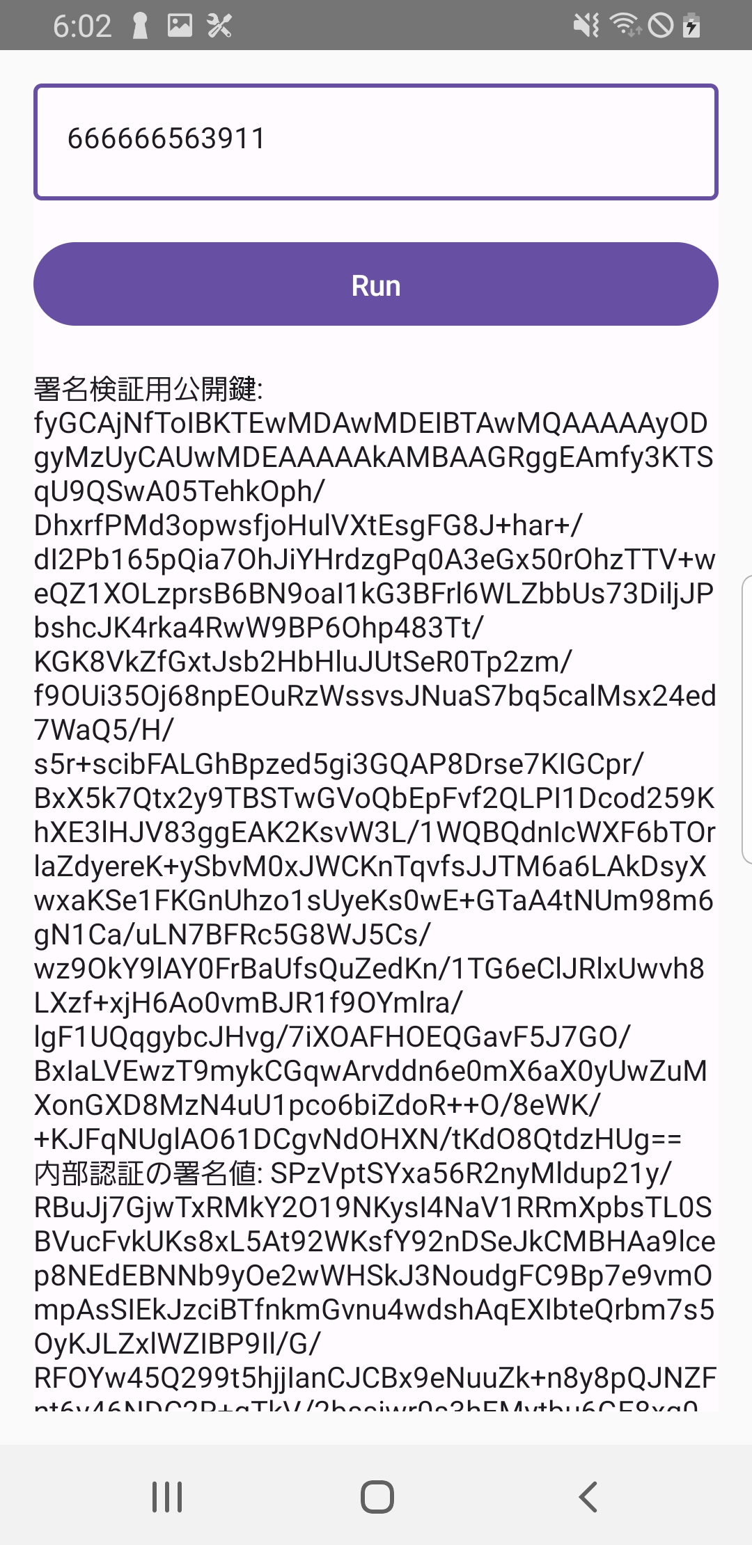 "内部認証の署名値: ${base64Encode(result.authenticationSignature)}\n"