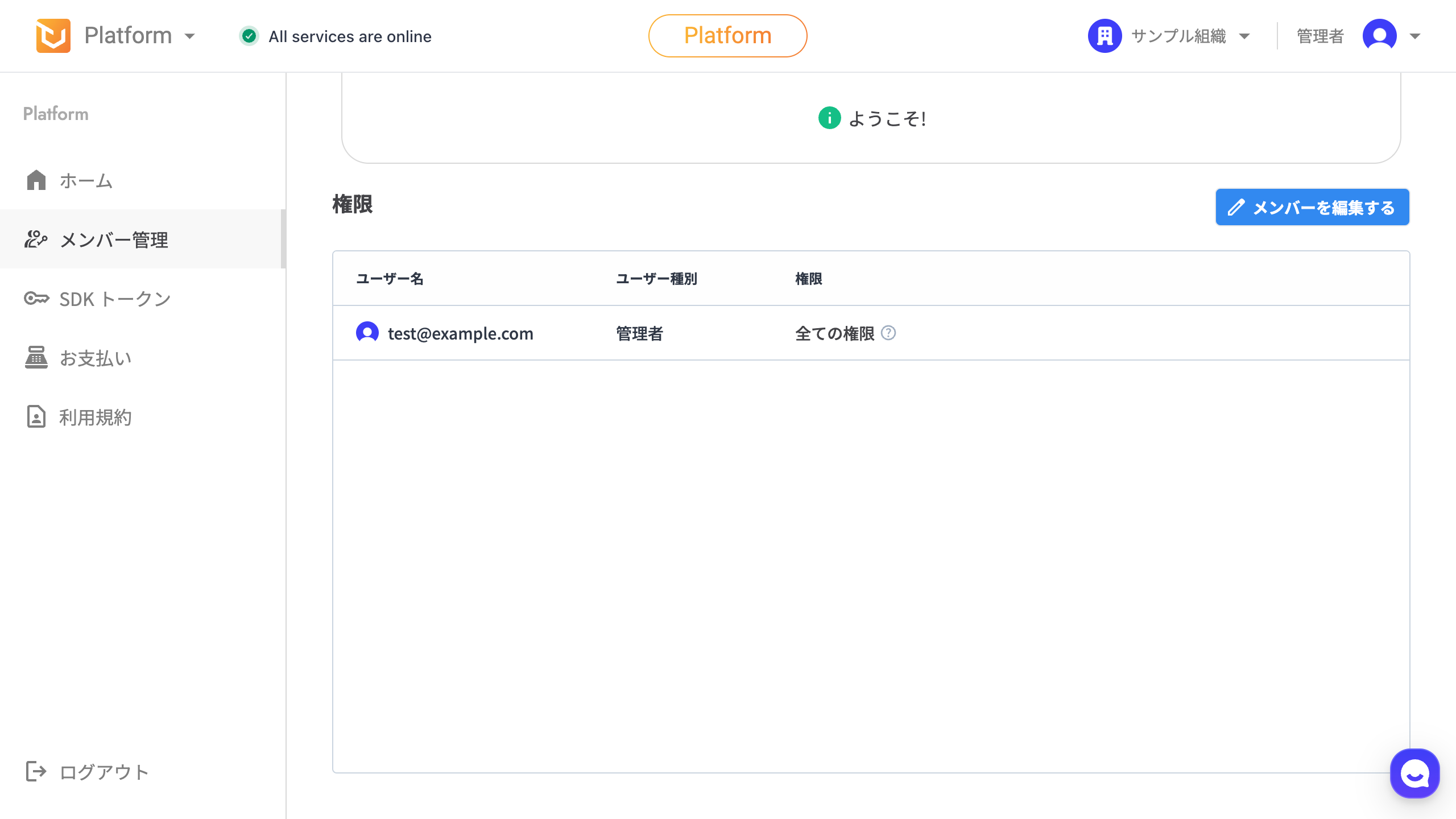 ホーム画面左側のメニューから、「メンバー管理」をクリックします。