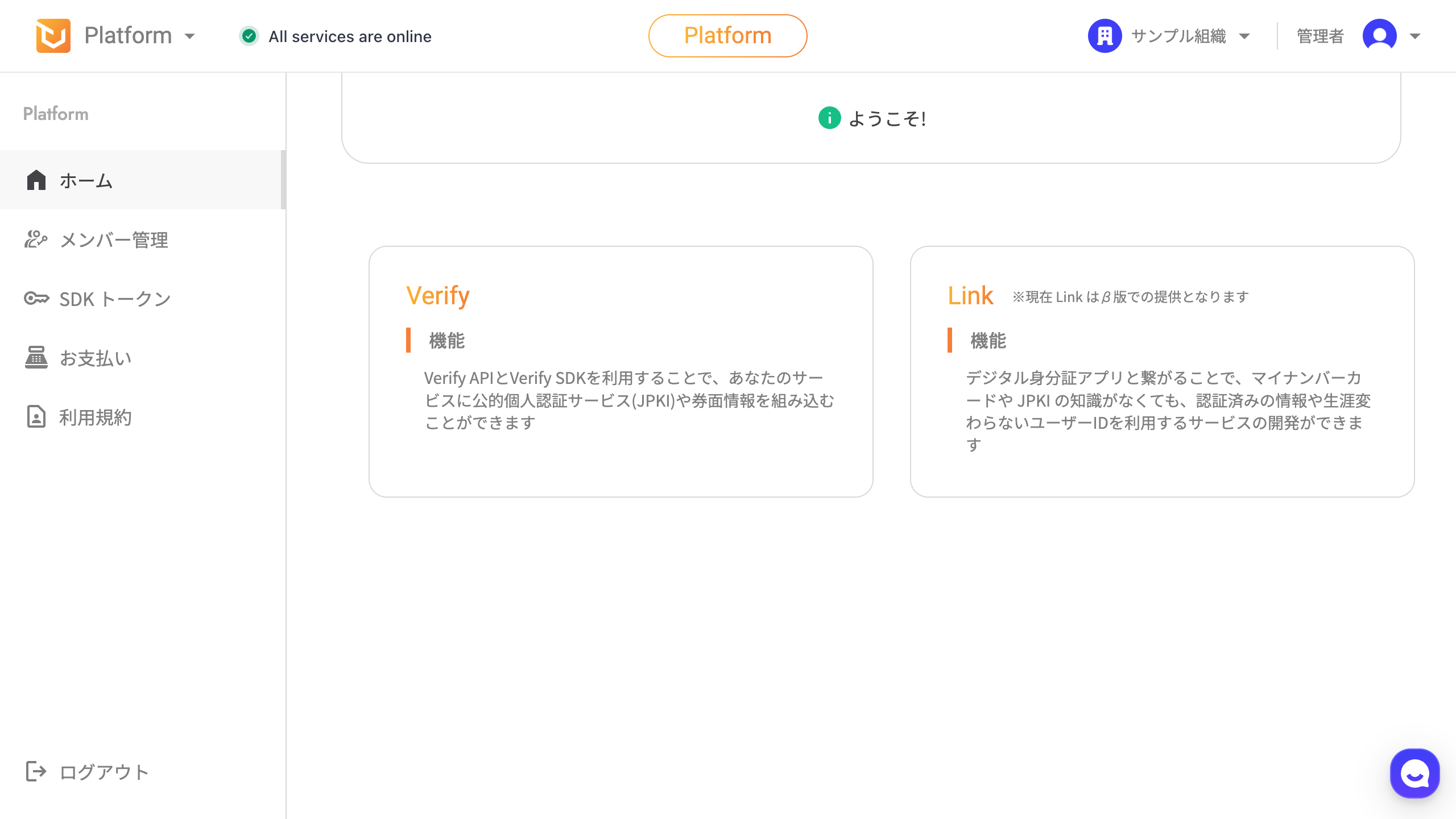 PocketSign Verify API を利用するには、PocketSign Platform への登録が必要です。 登録がお済みでない場合は、こちらからサインアップしてください。