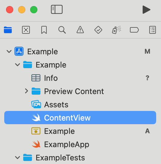 プロジェクトナビゲータから、ContentView ファイルを開きます。